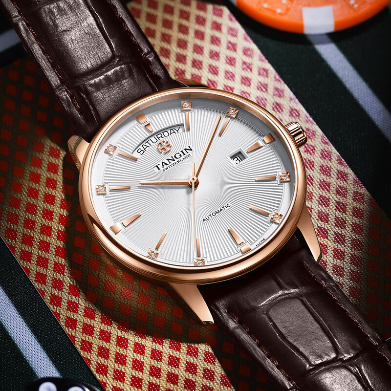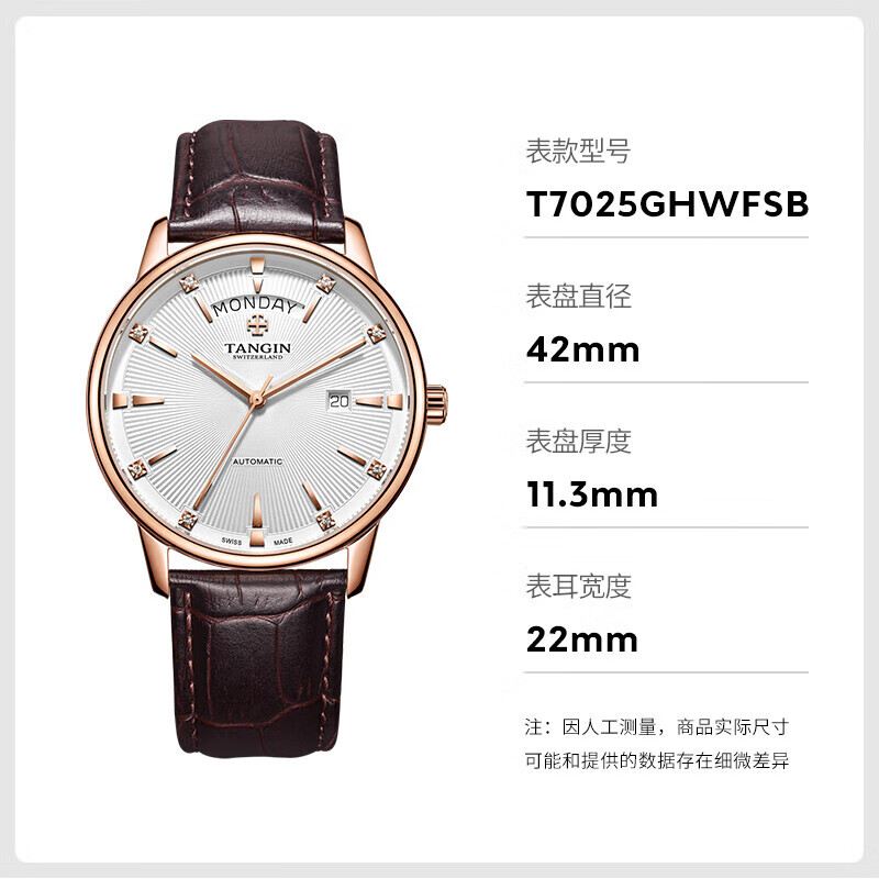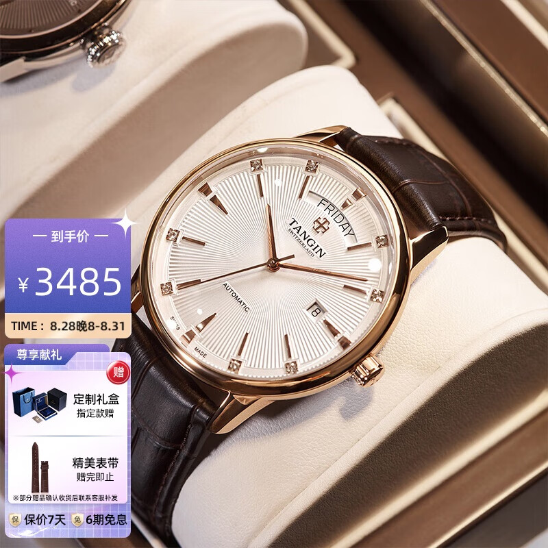 天珺(TANGIN)瑞士手表男 机械男士手表时尚皮带瑞表 送男友 T7025GHWFSB价格:3845.00元!