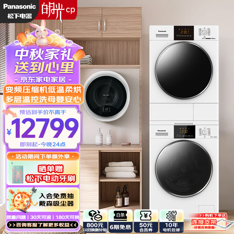松下(Panasonic)【白月光+小旋风】CP洗烘套装 10kg滚筒洗衣机+热泵烘干机+壁挂洗衣机810F+F1ER2+AD500W价格:12799.00元!