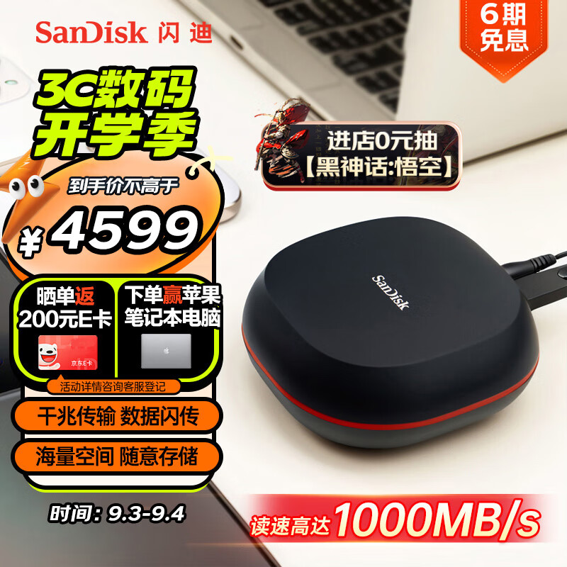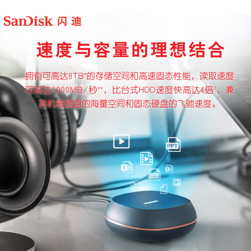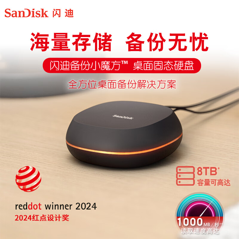 闪迪(SanDisk)8TB Type-c USB 3.2 桌面固态硬盘T40备份小魔方 读速高达1000MB/s 超大容量 稳定价格:4599.00元!