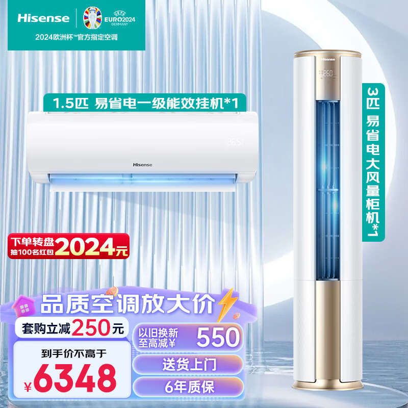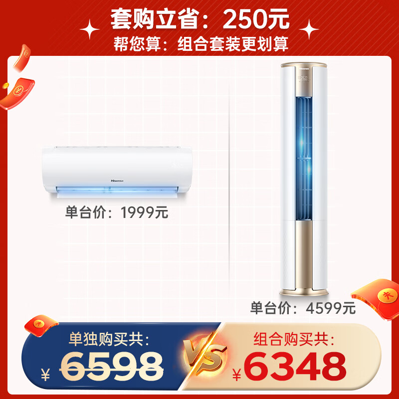 海信(Hisense)易省电空调套装 一室一厅 新一级能效变频超大风量客厅柜机卧室家用挂机(1.5匹+大3匹)价格:6348.00元!