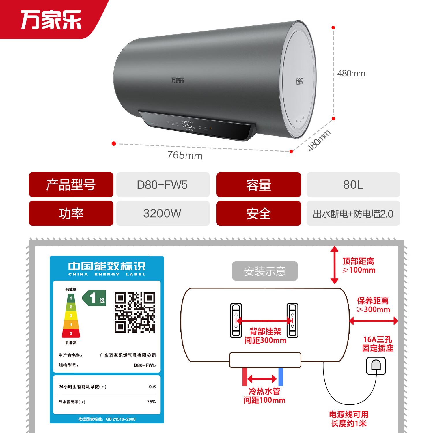 万家乐D80-FW5配置参数: